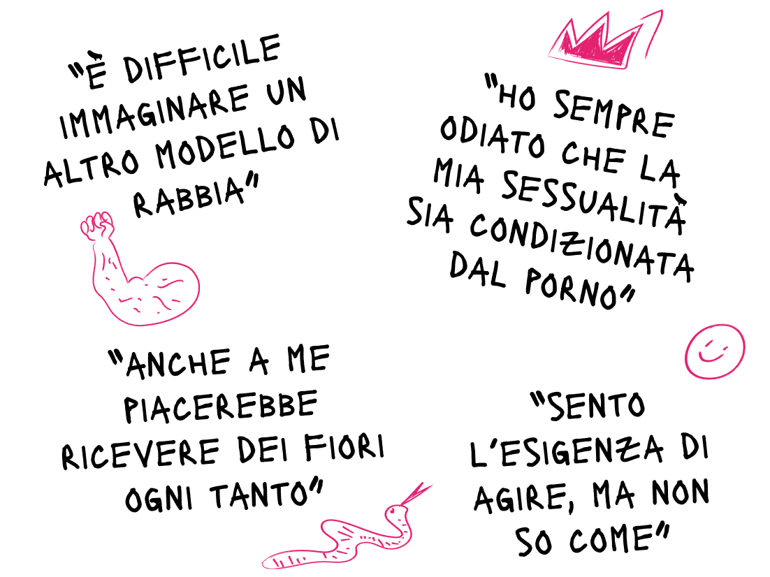Vogliamo costruire spazi in cui uomini, donne e tutte le altre identità che lo desiderano possano intraprendere insieme un percorso di confronto e ascolto autentico.